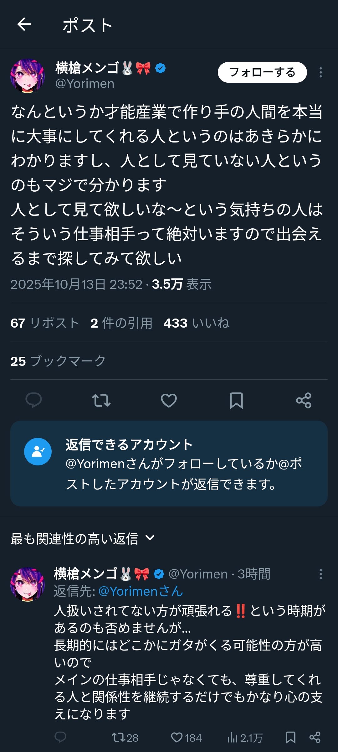 … | 831無念Nameとしあき25/10/14(火)14:22:42No.1358666998+>コミュ力あるんだな |