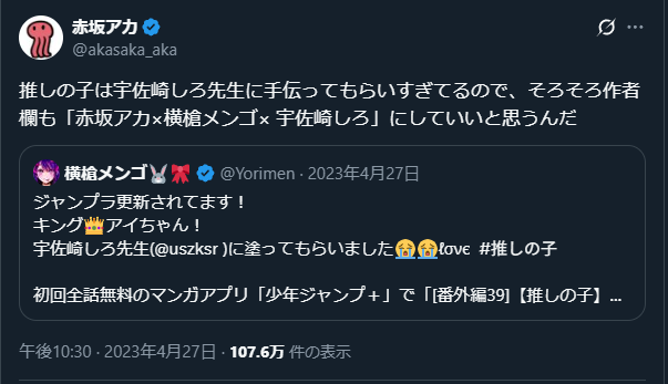 … | 753無念Nameとしあき25/10/14(火)13:28:42No.1358657700+>マシリトと赤坂アカ対談で語ってるよ |