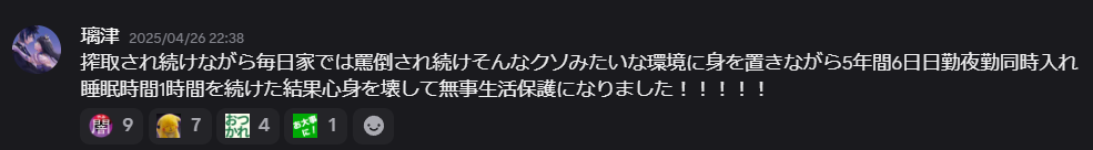 … | 97無念Nameとしあき25/10/14(火)18:16:11No.1358708059+>顔文字使いながら社長スレとか弁当スレとかを転々としながら暴言吐いてるだけ |