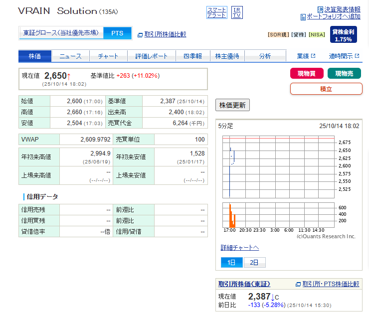 … | 76無念Nameとしあき25/10/14(火)18:05:30 ID:tZqDOCpoNo.1358705822そうだねx1 1760432730932.png-(49713 B) ![]() 135A、決算悪かったのにPTS上げまくりなので |