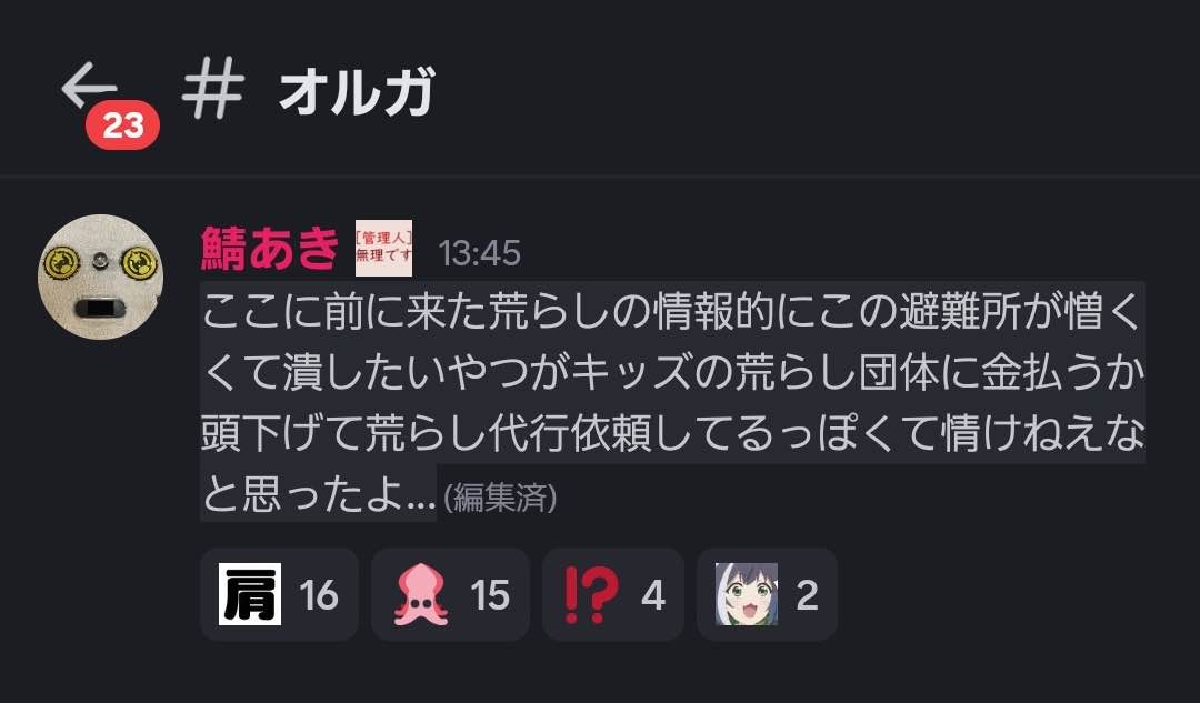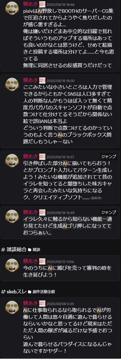… | 901無念Nameとしあき25/10/14(火)23:39:59No.1358802917+>まあバレたときにディスコード運営に通報されてたから |