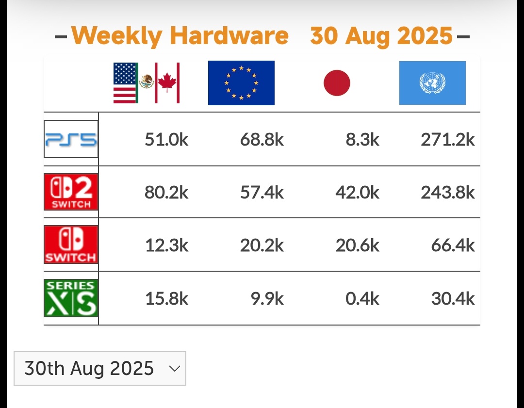 … | 809無念Nameとしあき25/10/15(水)13:18:42No.1358884609+8月全世界ハード売上(万台) |