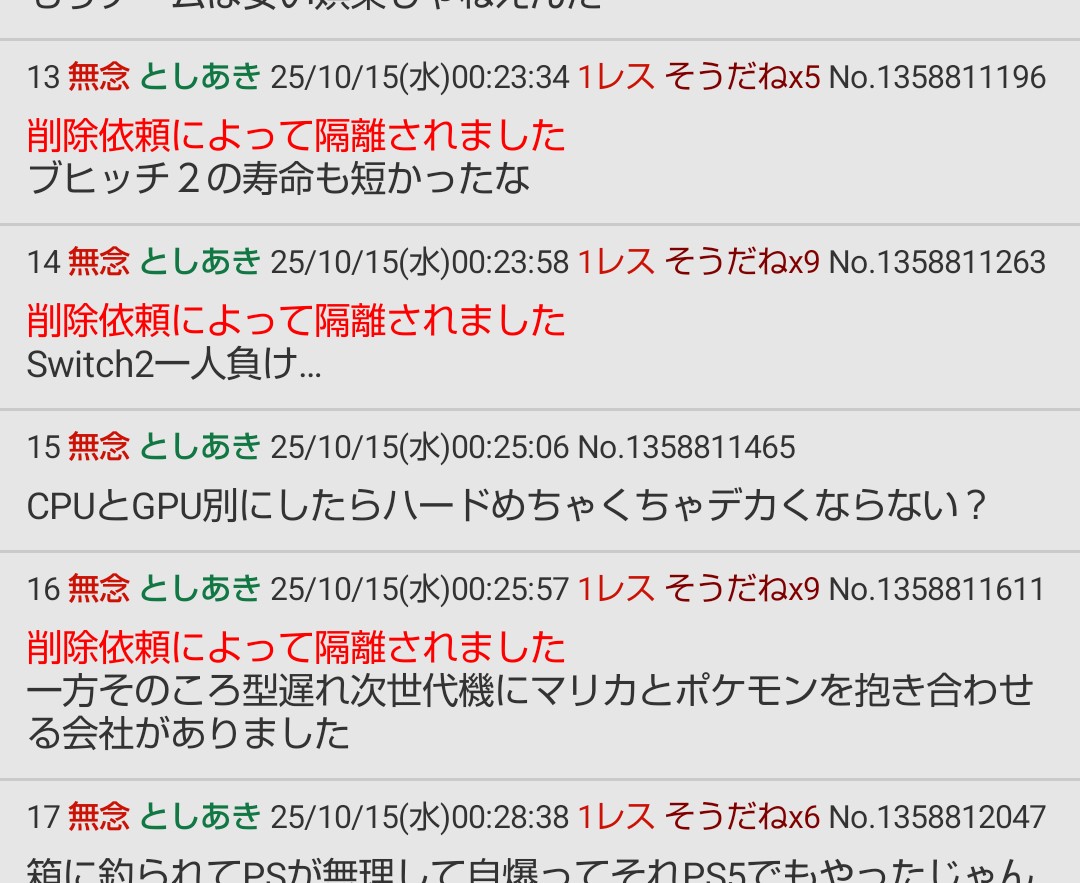 … | 24無念Nameとしあき25/10/15(水)00:45:21No.1358814732そうだねx38>Switch2一人負け… |