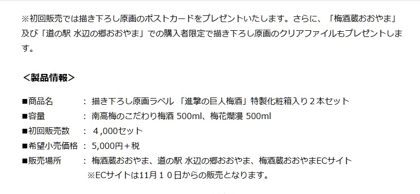 … | 12無念Nameとしあき25/10/15(水)06:10:01No.1358831948+ 1760476201182.jpg-(70285 B) ![]() 原作者描き下ろしラベル絵の進撃の巨人梅酒 |