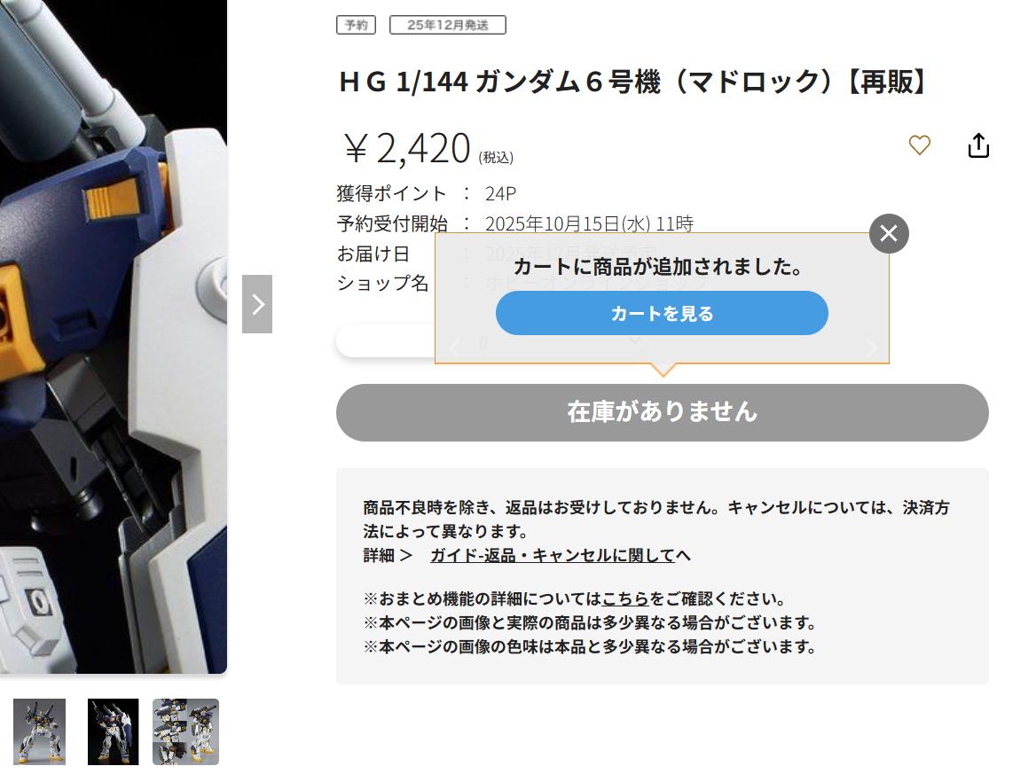 … | 308無念Nameとしあき25/10/15(水)12:33:05 IP:125.12.*(home.ne.jp)No.1358875956+>大変込み合ってるためカートにいれることができません |