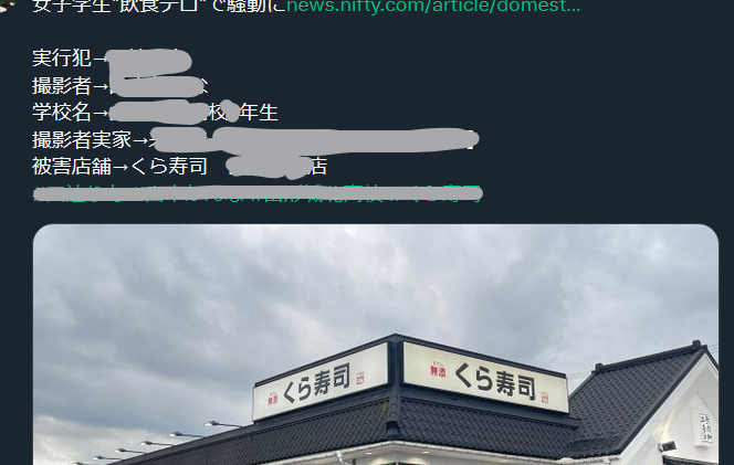 … | 461無念Nameとしあき25/10/15(水)17:53:59No.1358928190+>すでに名前学校顔写真まで特定されてるみたいだけど犯人も拡散する奴もどんだけガバガバなんだよと怖くなる |