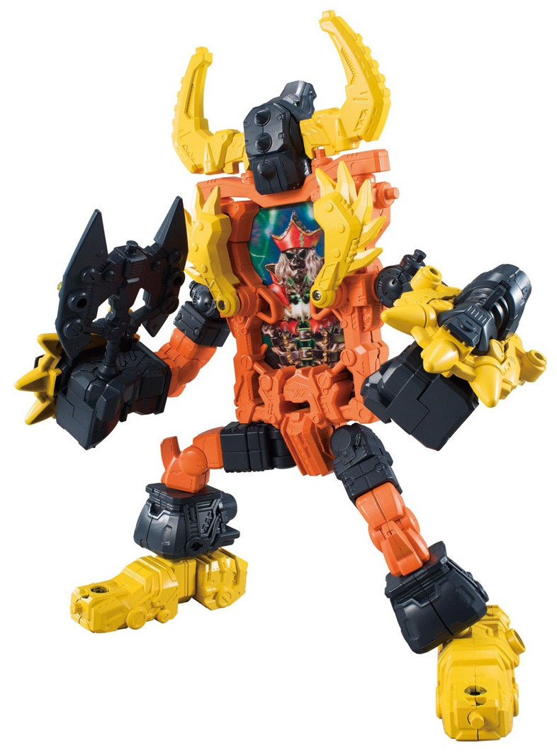 ブンブンジャーロボみたいに背中にカード読み取りできる変身アイテム背負わせるとか?