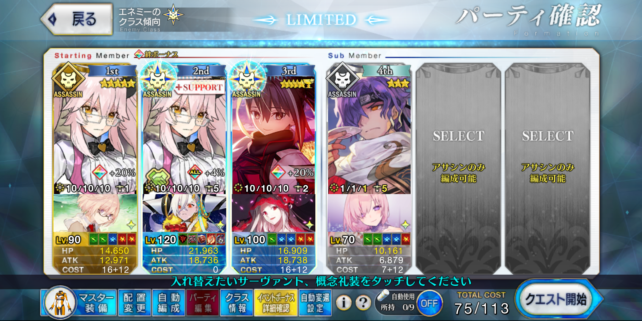 … | 896無念Nameとしあき25/10/16(木)00:59:57 IP:119.241.*(mesh.ad.jp)No.1359041048+>グラスコの回避付与と回避時即死耐性を獲得したらむしろグランドアサシンを先頭にして開幕即死を受けた方がいいぐらいなんだな |