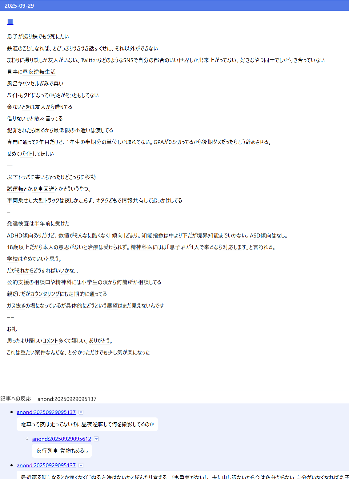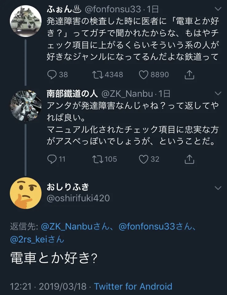 … | 53無念Nameとしあき25/10/15(水)23:06:03No.1359020706そうだねx19撮り鉄って知的障害と発達障害が多いから |