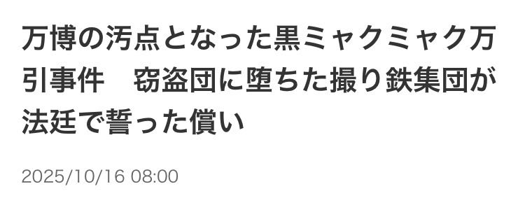 … | 536無念Nameとしあき25/10/16(木)10:51:35No.1359084573+>撮り鉄の場合は犯罪告発するとタブー破ったって告発者リンチにするからな |