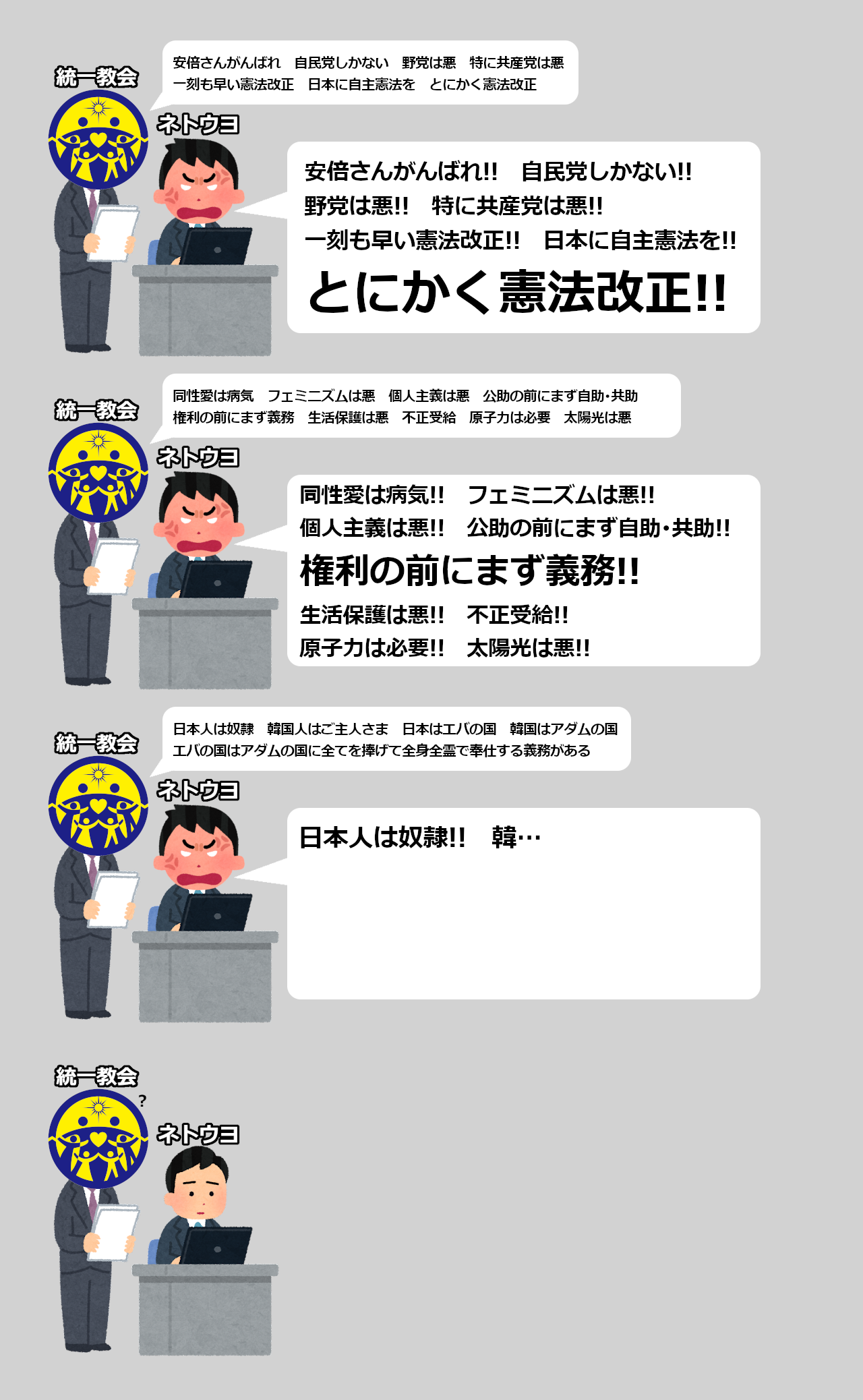 … | 16無念Nameとしあき25/10/16(木)23:14:49No.1359245865そうだねx3>ネトウヨって日本共産党と韓国の反日カルトの統一教会の択一なら統一教会を喜んで選びそう |