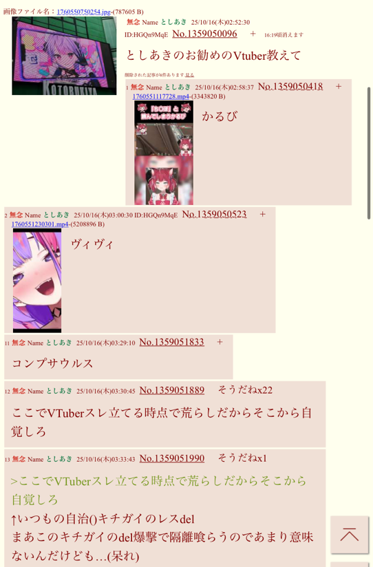 … | 32無念Nameとしあき25/10/16(木)23:59:17No.1359256493そうだねx22 1760626757146.jpg-(33218 B) ![]() >伝説のVtuberスレ |