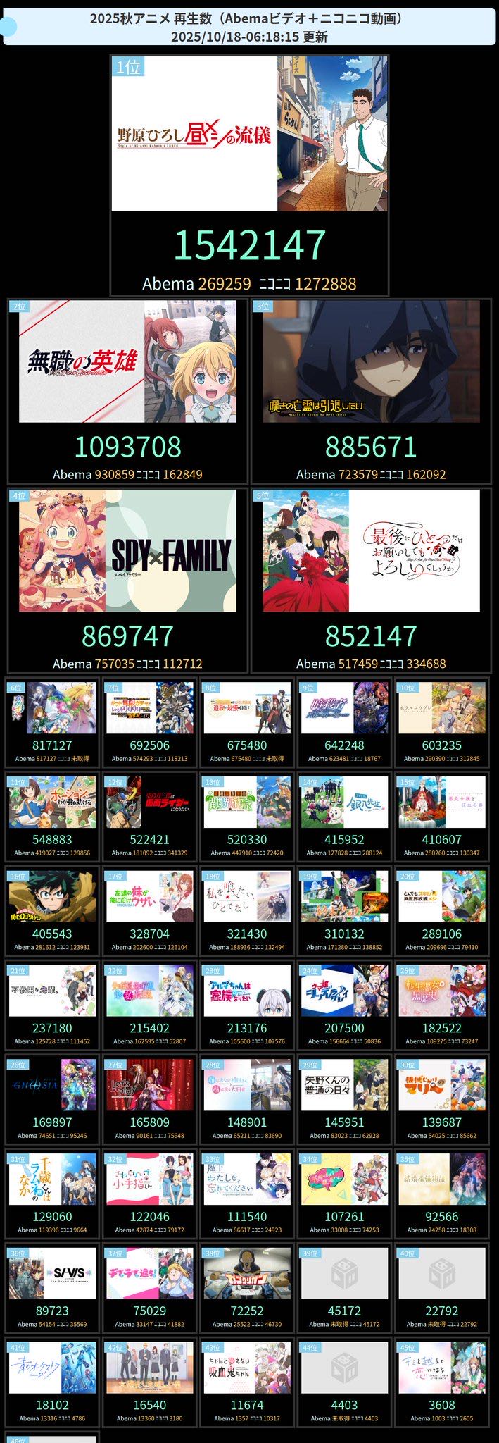 … | 88無念Nameとしあき25/10/19(日)15:46:08No.1359882262+>ニコ動のヒロアカって1話目しか再生数伸びないのになんで?って思ったら今期は一週間無料公開してんのか |