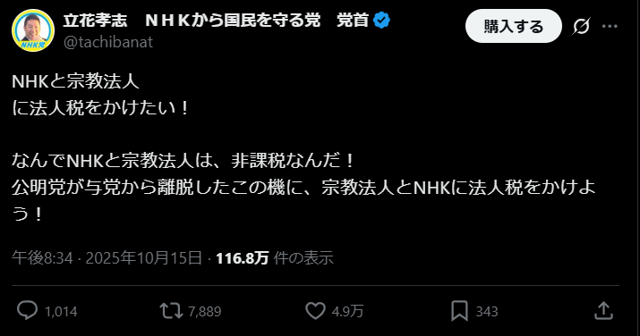 … | 947無念Nameとしあき25/10/19(日)15:33:27No.1359878724+N党は時事通信とかNHKとかへの牽制やろ |