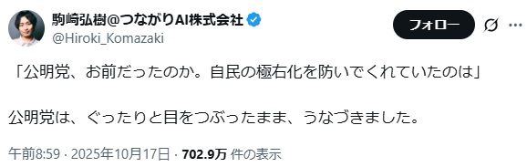 … | 23無念Nameとしあき25/10/21(火)08:32:41No.1360296243+公明は抜けるし |