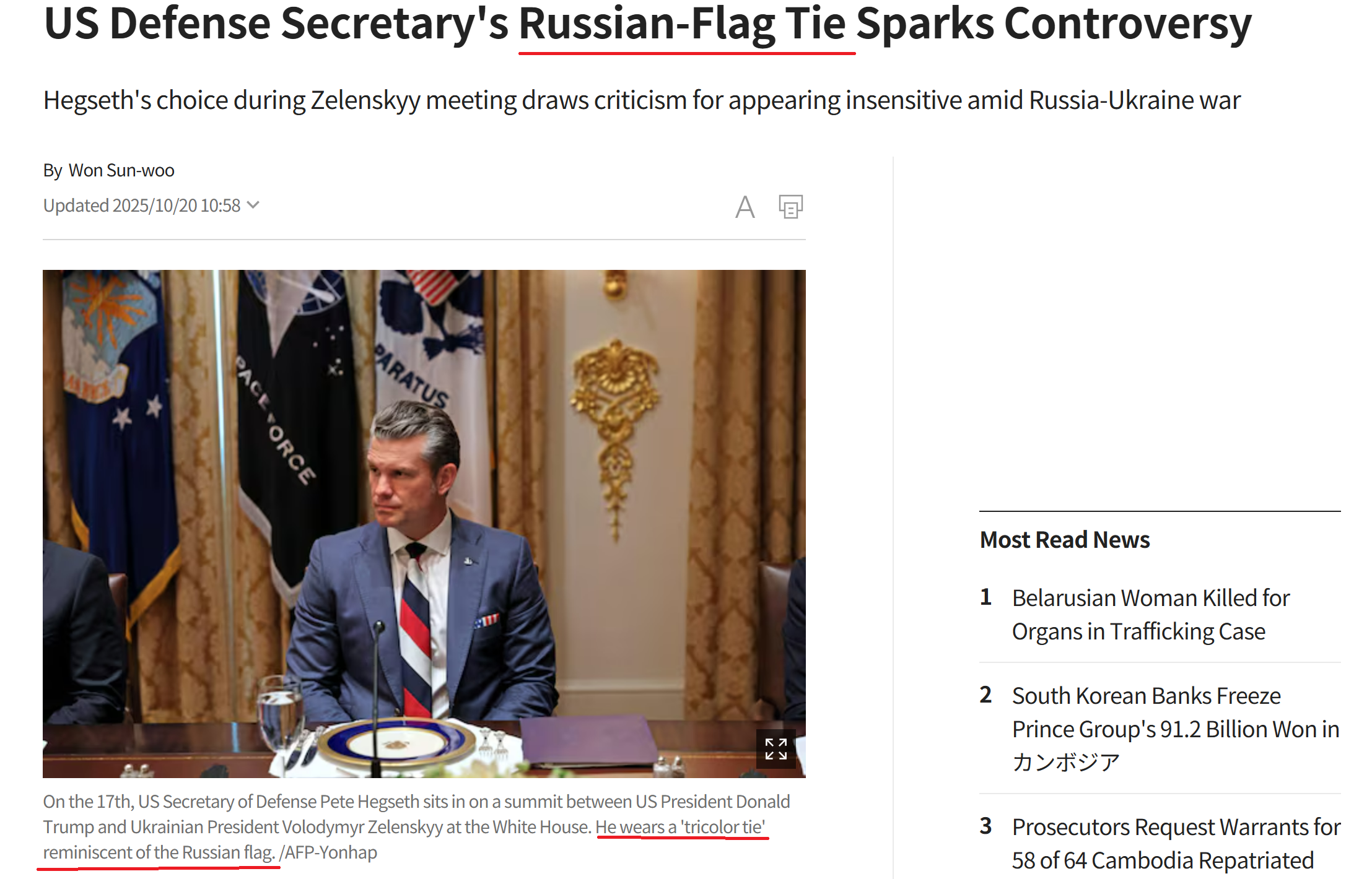 … | 58無念Nameとしあき25/10/21(火)09:30:58No.1360302888そうだねx3 1761006658837.png-(1177337 B) ![]() ゼレンスキーをロシア国旗ネクタイで迎えるヘグセス戦争長官 |