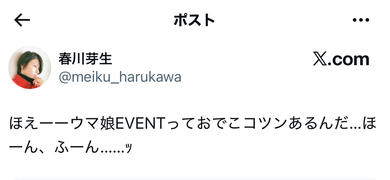 … | 81無念Nameとしあき25/10/21(火)11:53:22No.1360322472+>トレーナーは家族みたいなもんやからこれは婚活やないでオグリ |