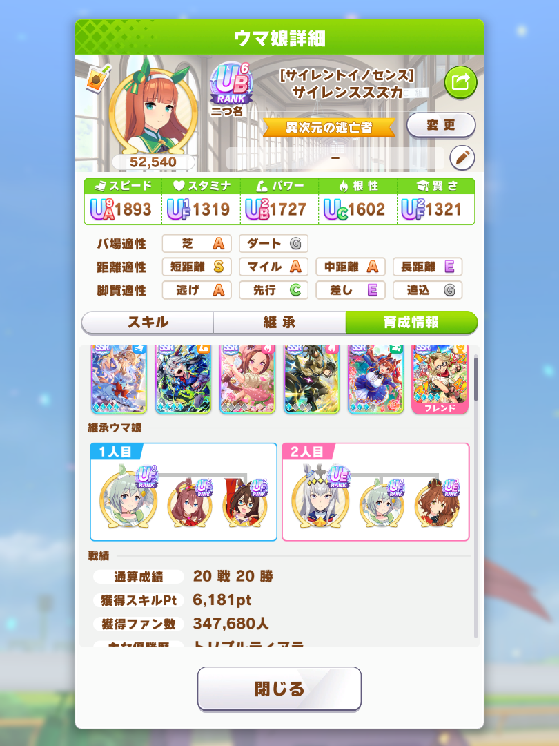 … | 50無念Nameとしあき25/10/21(火)11:47:33No.1360321520+固有スキルレベル上がるくらいにはレース出た方がいいのかな |