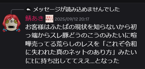荒らしと化した自治気取りの正義マンはふたばからもめぶきからもお荷物扱いなのだ
