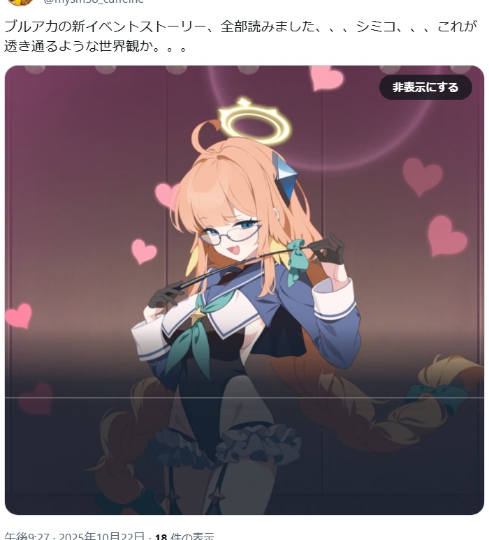 … | 25無念Nameとしあき25/10/22(水)21:32:06No.1360661271そうだねx6>公式が一番のブルアカアンチだから |