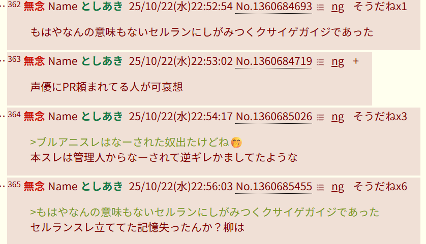 … | 959無念Nameとしあき25/10/23(木)03:34:47No.1360716492そうだねx3多分これもブルアニスレの仕業にされそう |