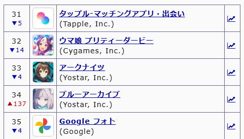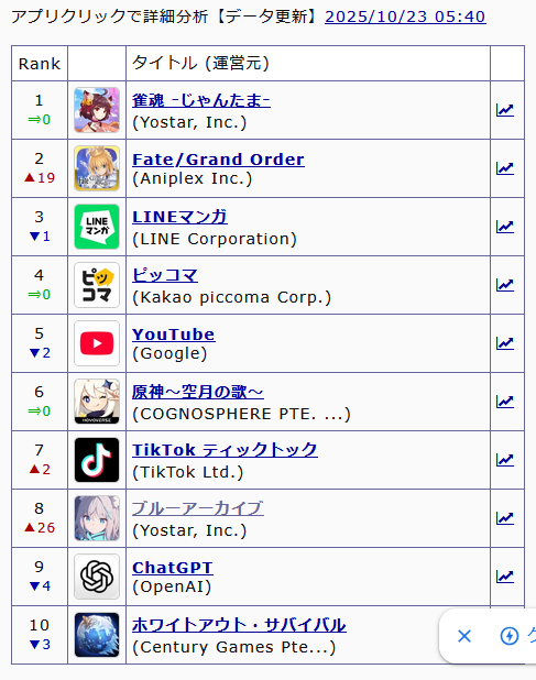 … | 937無念Nameとしあき25/10/23(木)02:08:59No.1360713332そうだねx3>ブルアカ34位か |