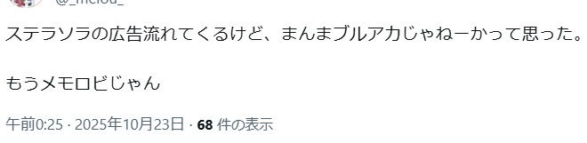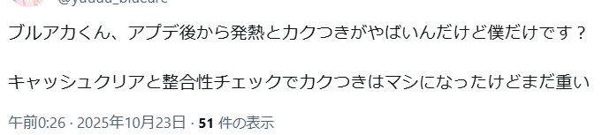 … | 972無念Nameとしあき25/10/23(木)06:55:20No.1360722456+昨日は早く寝ちゃったけど伝聞でブルアカのシナリオがマシな方で良かったよ |