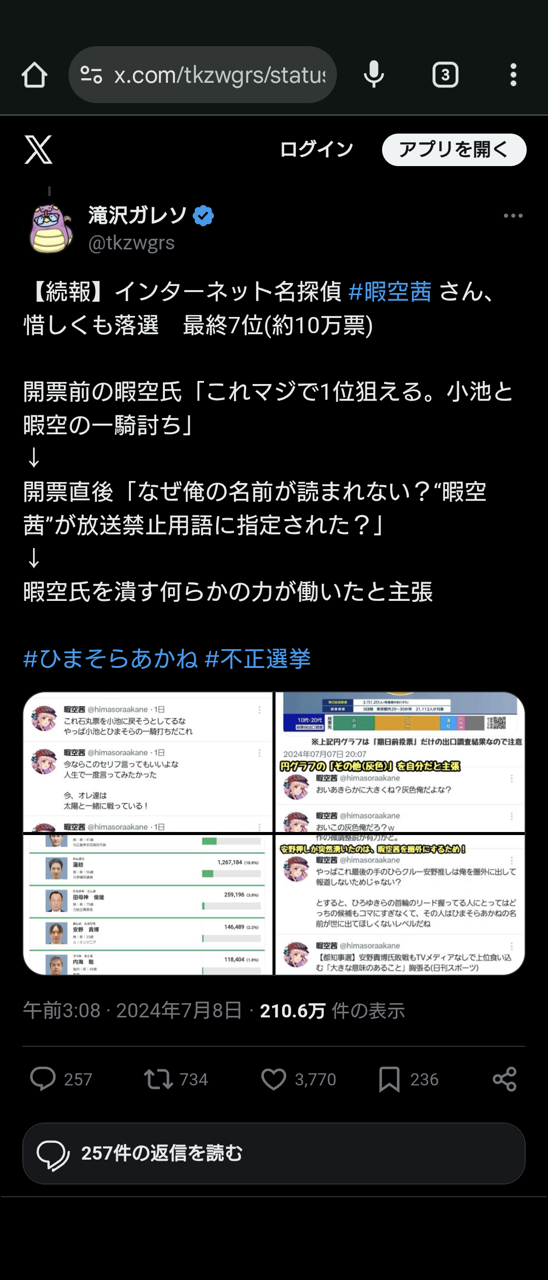暇空「票の操作があった」