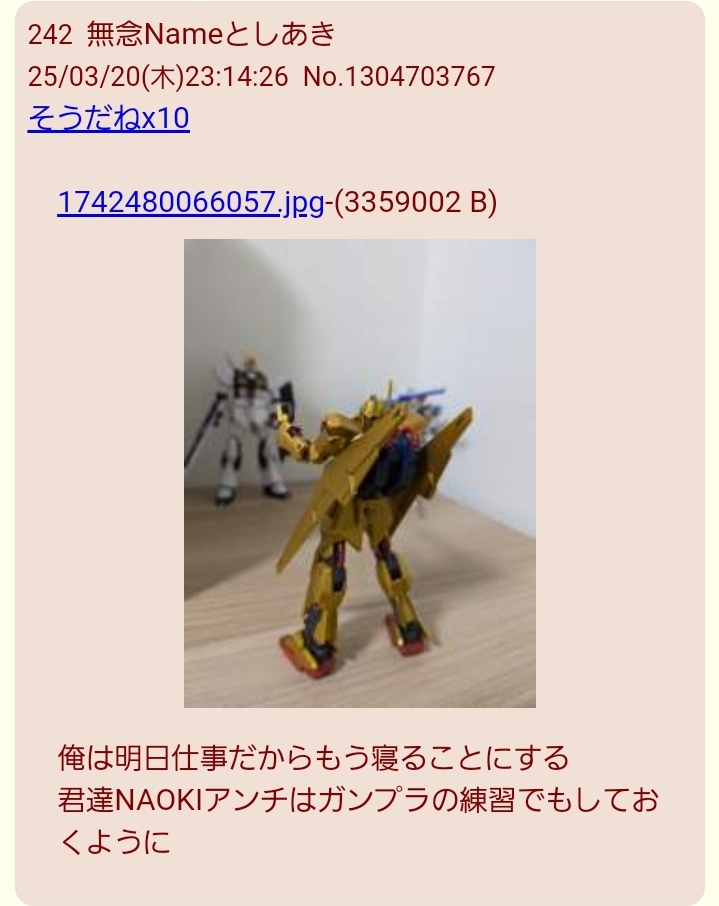 | … | 22無念Nameとしあき25/10/24(金)19:08:14No.1361055420そうだねx1>ガンプラ作ったから評価するだで |