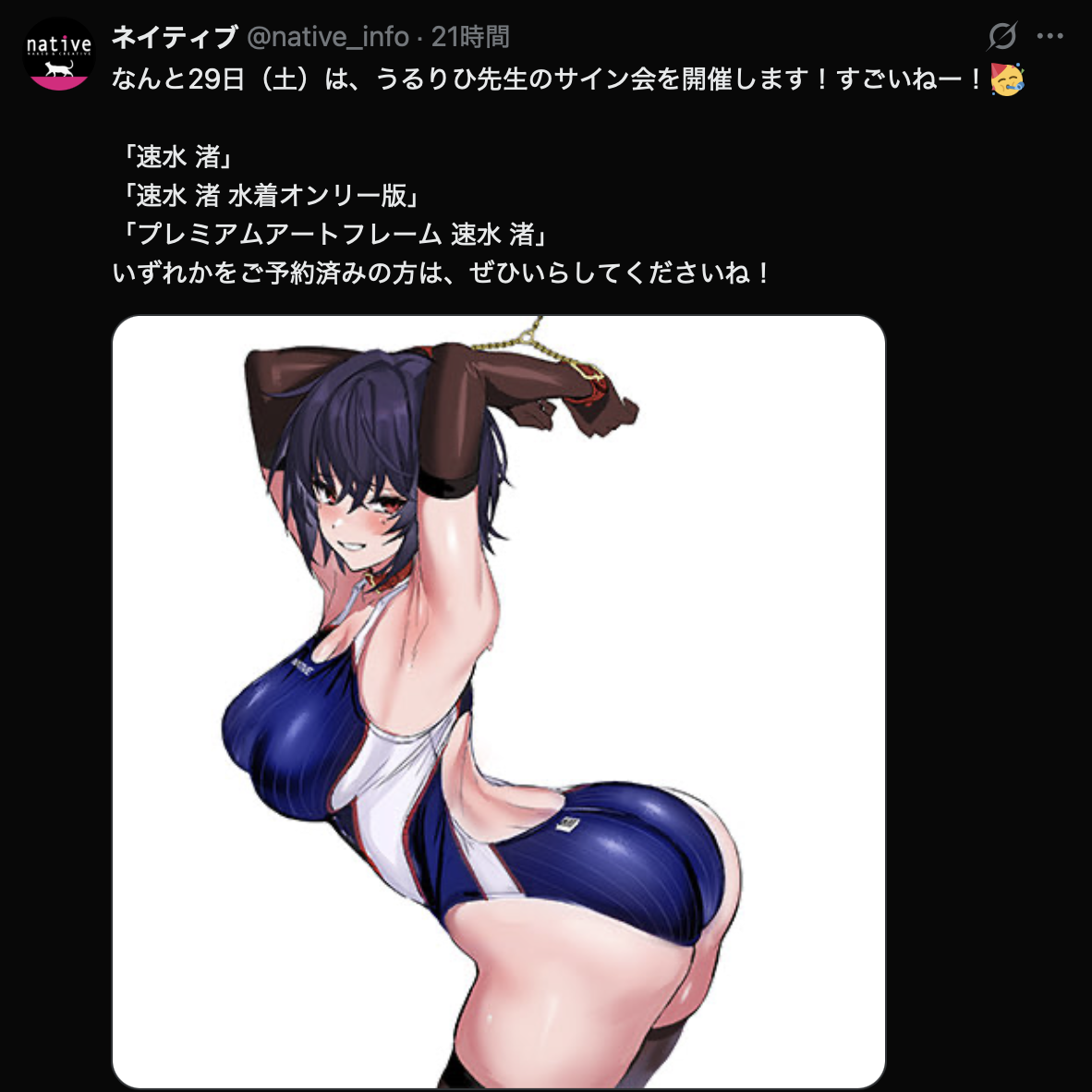| … | 89無念Nameとしあき25/10/25(土)19:31:56No.1361319023+基本的に一般アニメ・ゲームのスケベフィギュアしか買わないけどうるりひ先生の競泳水着シリーズだけは買ってる |