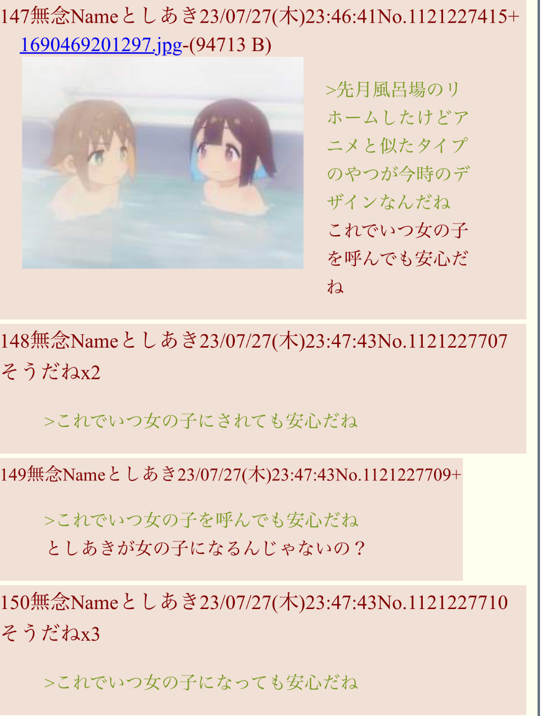 | … | 73無念Nameとしあき25/10/25(土)19:18:12No.1361315093+>お兄ちゃんただの女児だった… |