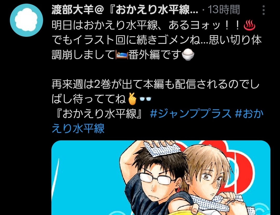 | … | 37無念Nameとしあき25/10/26(日)06:57:02No.1361439106+>水平線は作者病気なのでしょうがない |