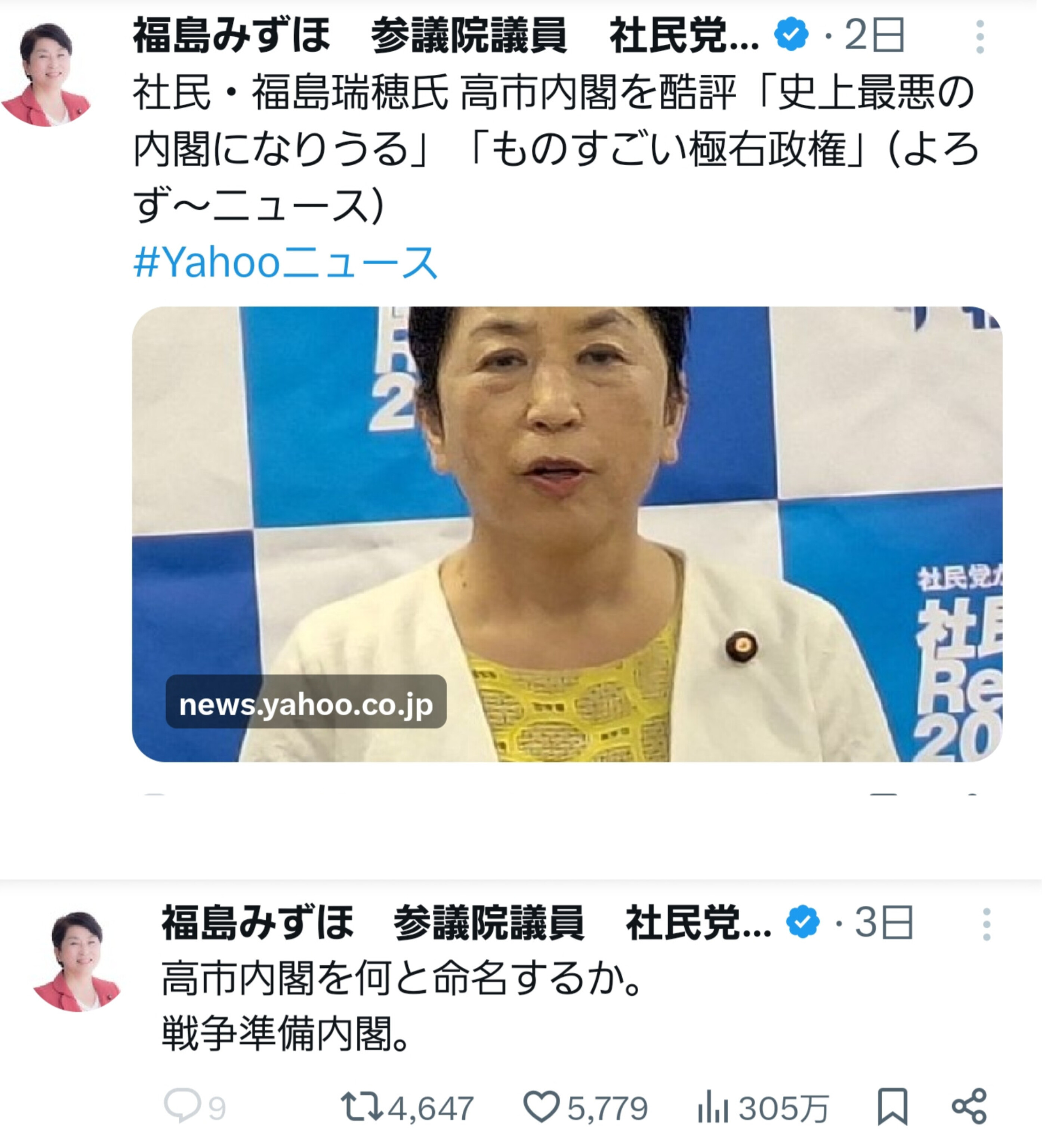 | … | 48無念Nameとしあき25/10/26(日)10:28:30No.1361470886+社民党はもう議席確保すら危ういからな |