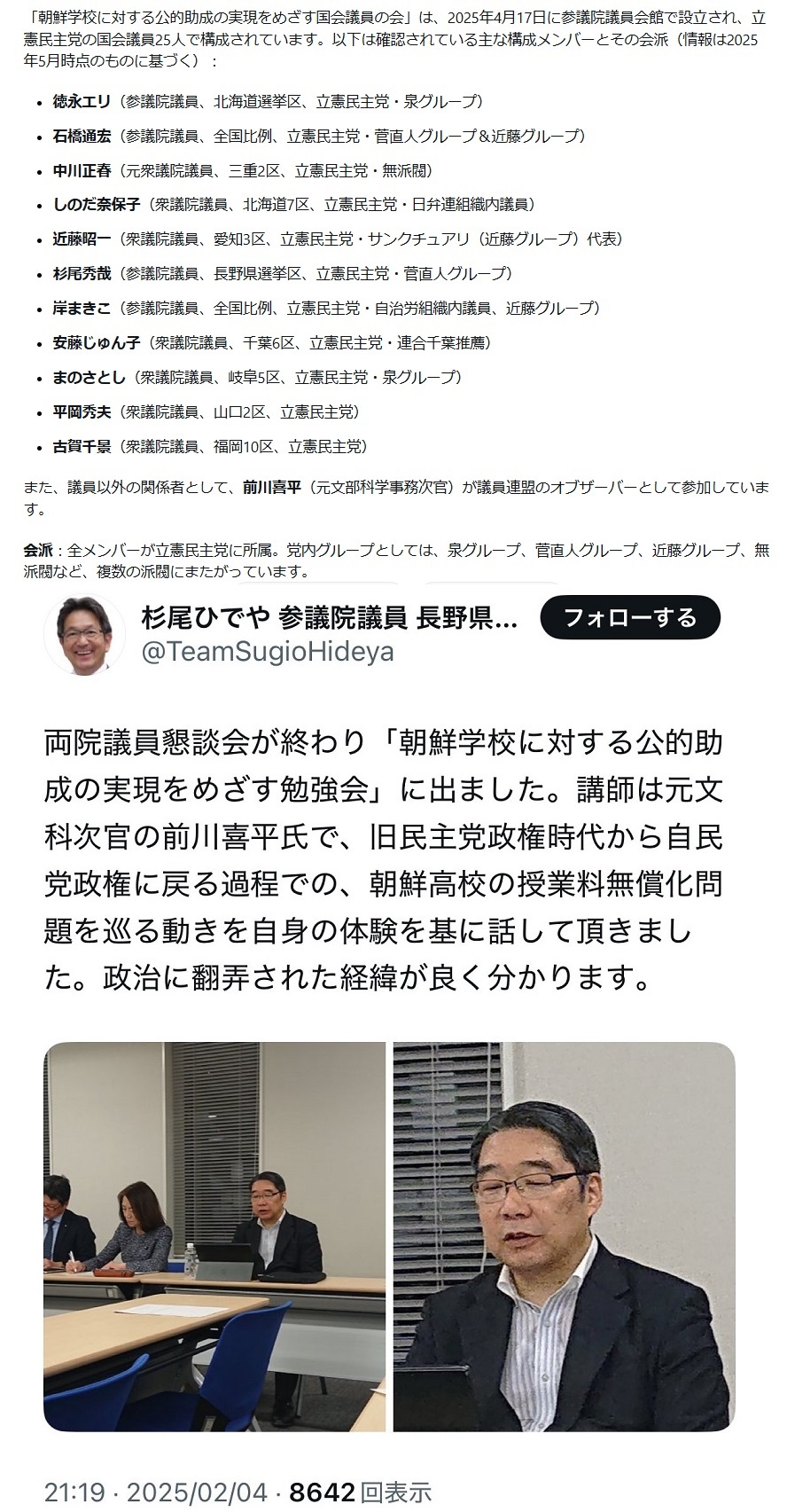 | … | 26無念Nameとしあき25/10/26(日)03:55:29No.1361432448そうだねx4 1761418529350.jpg-(463414 B) >議員としての初仕事が朝鮮学校の支援 |