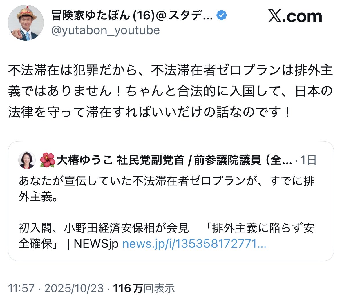 | … | 27無念Nameとしあき25/10/26(日)04:54:50No.1361434335そうだねx19 1761422090005.jpg-(156117 B) ゆたぼんに論破される副党首 |