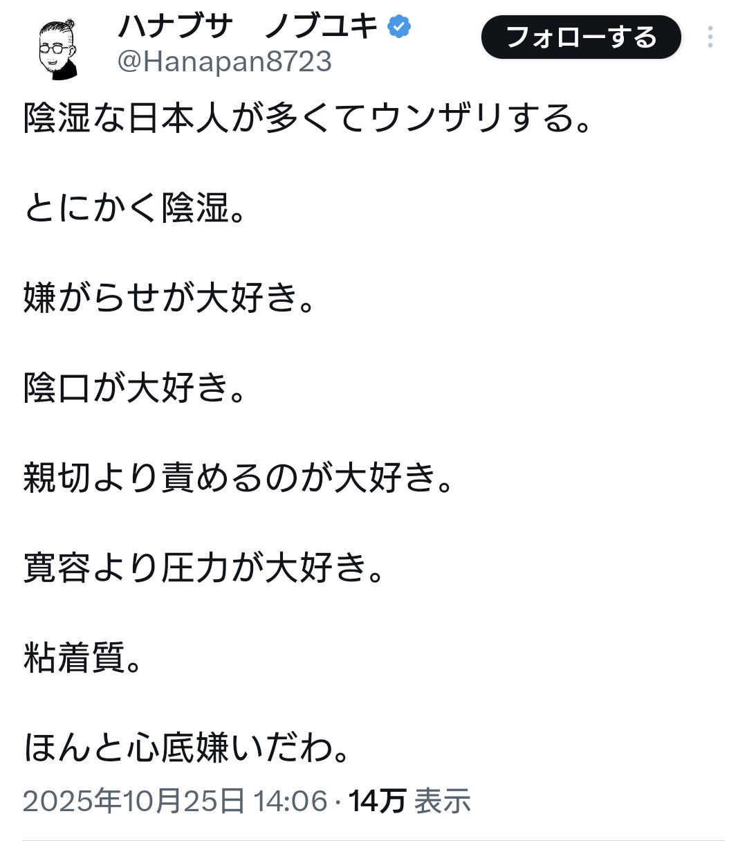 | … | 46無念Nameとしあき25/10/26(日)10:08:53No.1361466586+>まず他人を悪者にすることで相対的に自分は正しいという論法ばかり |