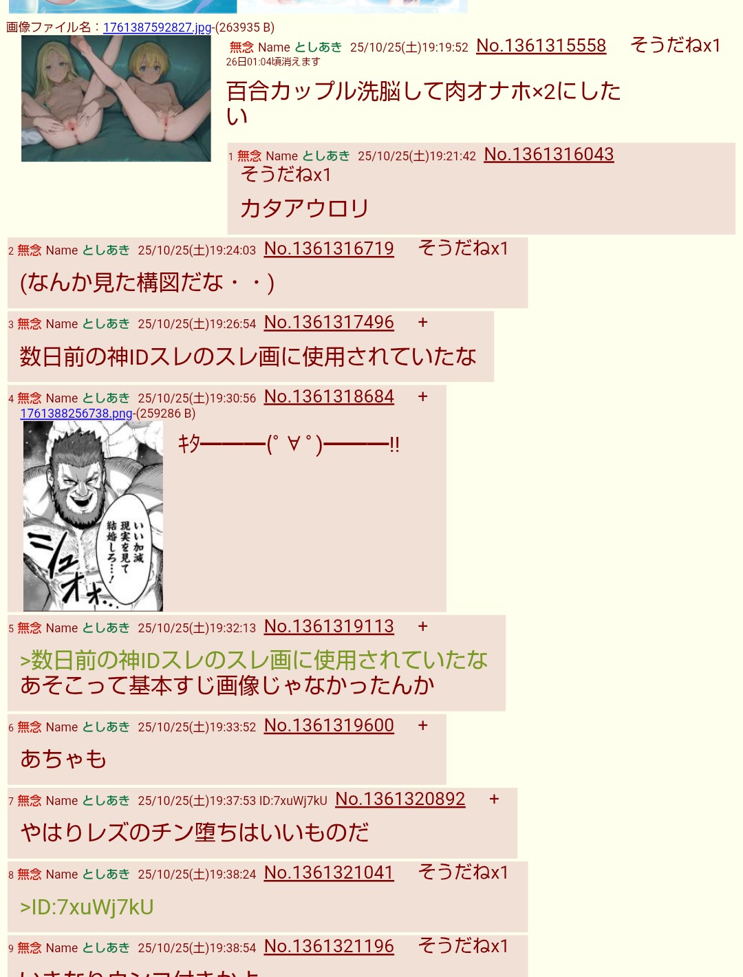 | … | 53無念Nameとしあき25/10/26(日)14:06:41No.1361525044+>それはレズなのだろうか? |