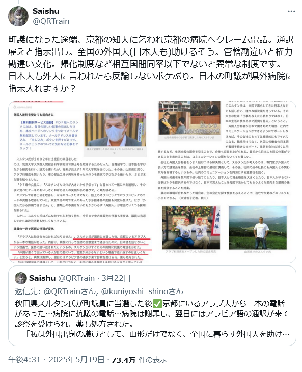 | … | 67無念Nameとしあき25/10/26(日)14:13:51No.1361526676そうだねx7>帰化したシリア人が町議になった途端 |