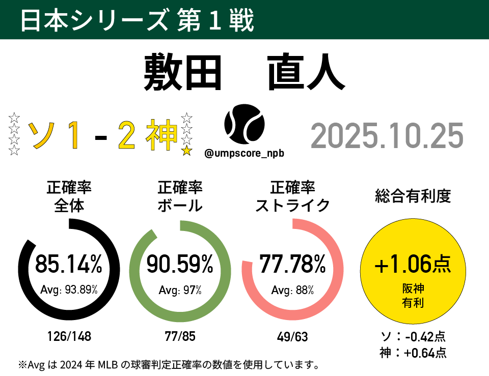 | … | 444無念Nameとしあき25/10/27(月)16:53:55No.1361803335+昨日の球審は正確だったわけではないけど平等だったよ |