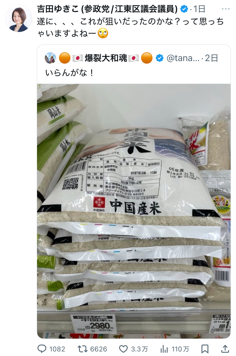 | … | 793無念Nameとしあき25/10/28(火)05:37:19No.1361933608そうだねx1そらカリホルニア米よ茂木外相で茂木派農水だもの |
