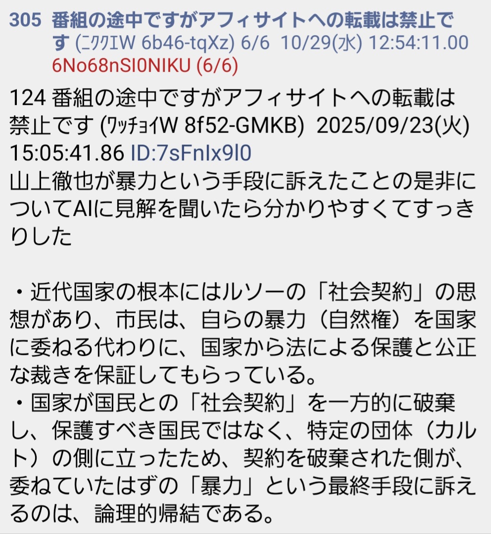 | … | 74無念Nameとしあき25/10/30(木)15:59:29No.1362475641+ 1761807569587.jpg-(75415 B)  >山上は奪われた権利を自ら取り戻しただけ |