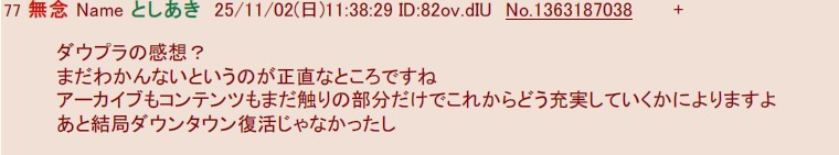| … | 77無念Nameとしあき25/11/02(日)11:38:29 ID:82ov.dIUNo.1363187038+ダウプラの感想? |