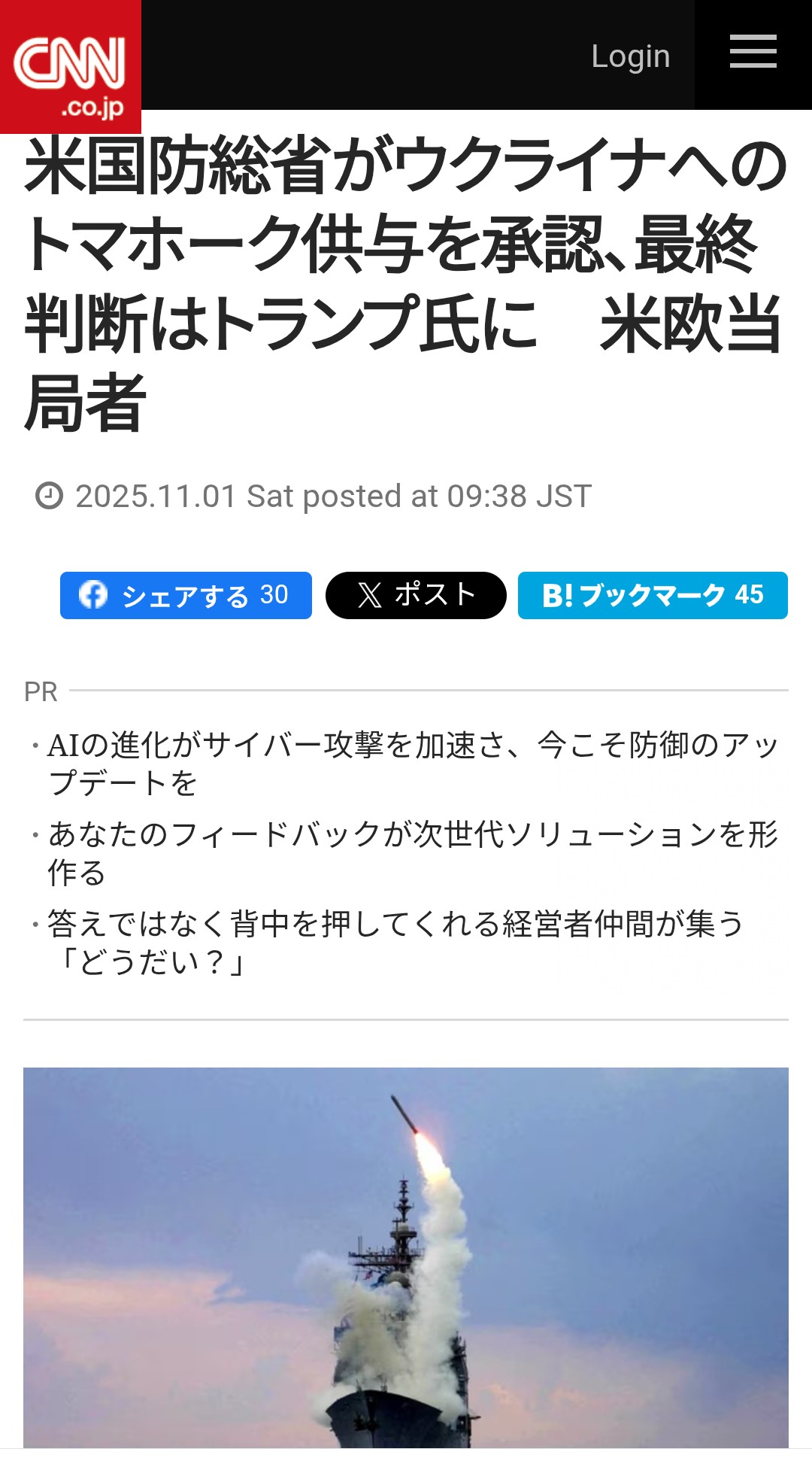 | … | 72無念Nameとしあき25/11/02(日)18:42:54No.1363306468+ 1762076574757.jpg-(235968 B) >トマホークってもう配備されたの? |