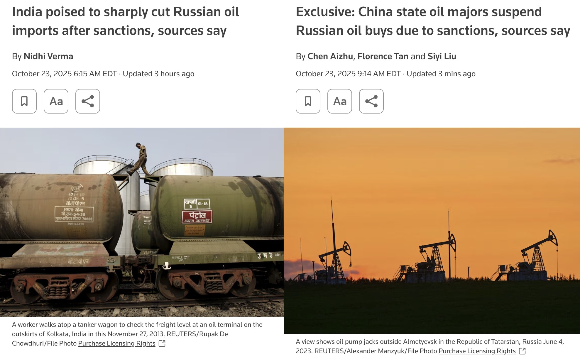 | … | 602無念Nameとしあき25/11/02(日)20:30:28No.1363338794そうだねx1>>もう精油所を破壊されたロシアに外国に輸出する石油製品はないのよ? |