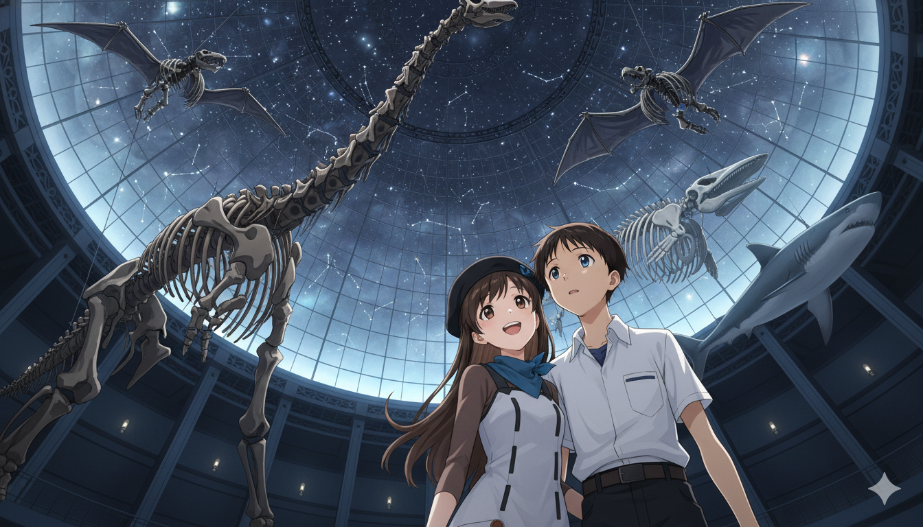 サクラ「わあ〜自然史はダイナミックですねえ。恐竜の頃の星空やって」