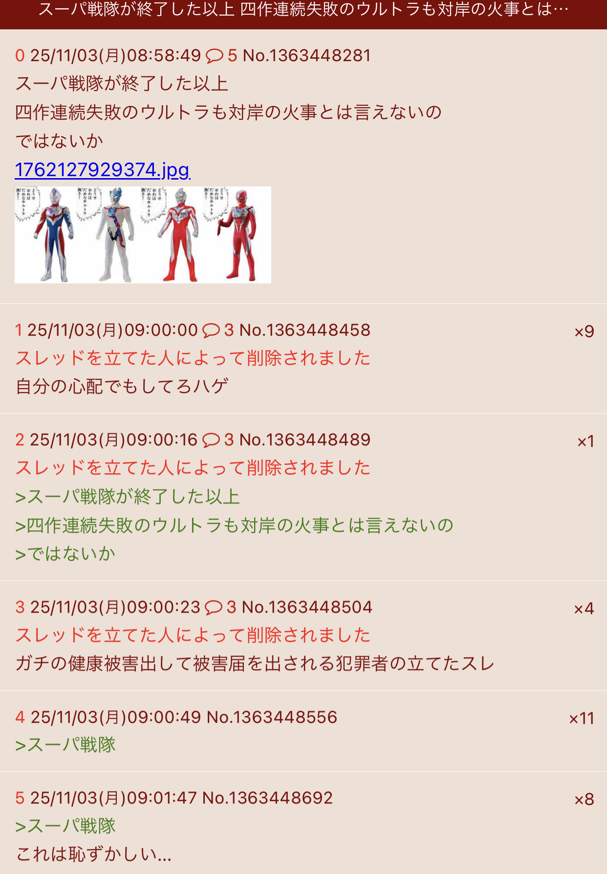 | … | 7無念Nameとしあき25/11/03(月)09:02:47No.1363448809そうだねx15>スーパ戦隊  |