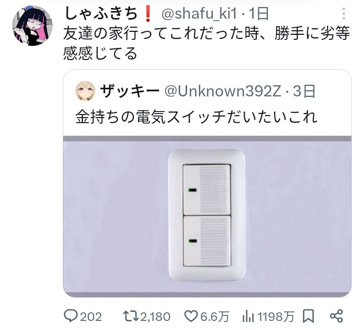 | … | 194無念Nameとしあき25/11/04(火)14:46:51No.1363742759+>家のスイッチで今も操作するのは |