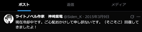 | … | 847無念Nameとしあき25/11/04(火)22:14:57No.1363839467+SNSは生存が知れるのはいいことだがそれはそれとして仕事しろと言いたくなるアンビバレンツ |
