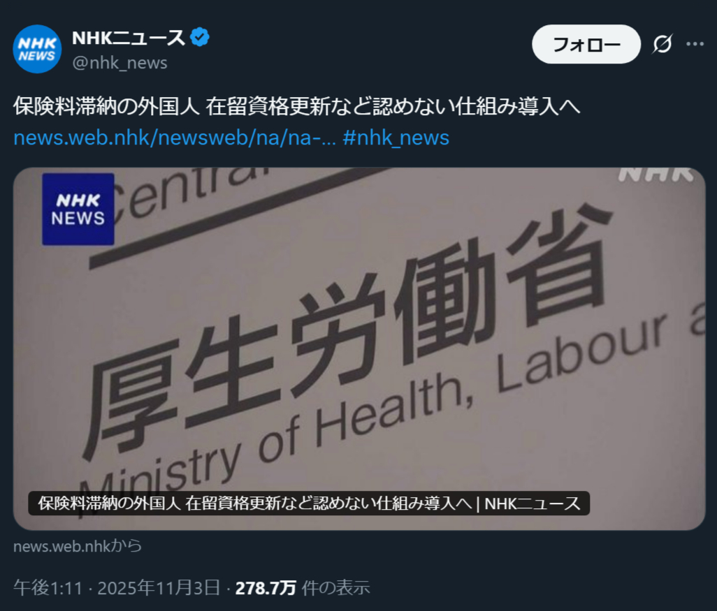 | … | 28無念Nameとしあき25/11/04(火)19:49:01No.1363797499そうだねx11>外国人を保険料滞納しただけで追い出すと聞いて怒りで震えて涙が止まらない |