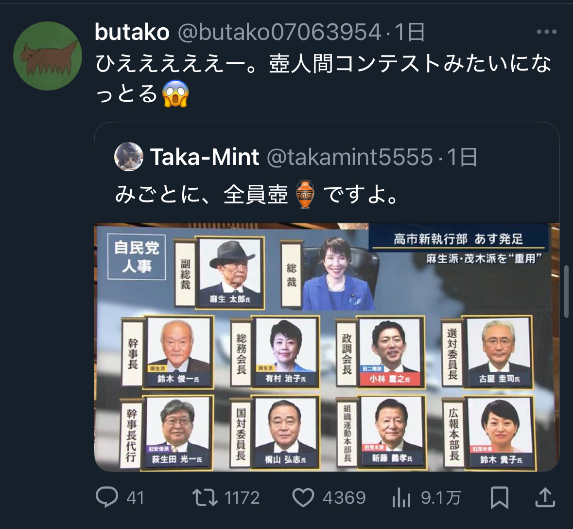 | … | 95無念Nameとしあき25/11/04(火)20:08:04No.1363802651+ 1762254484647.jpg-(753444 B) 高市が任命した自民党執行部がね… |